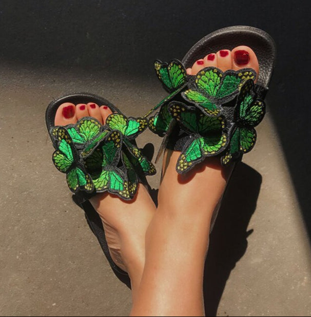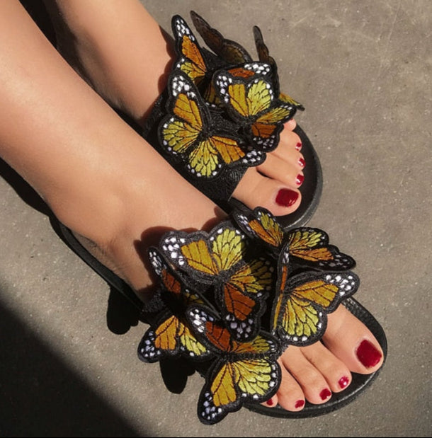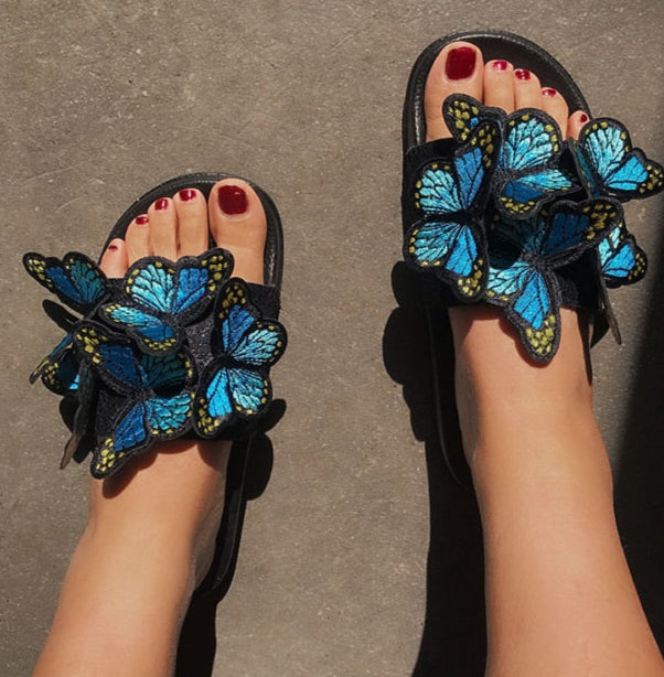 3D Embroidered Butterfly Slip On Flat Sandals