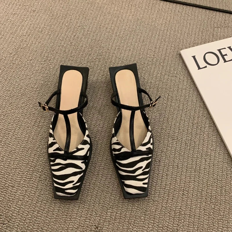 Square T-Strap Flat Mules