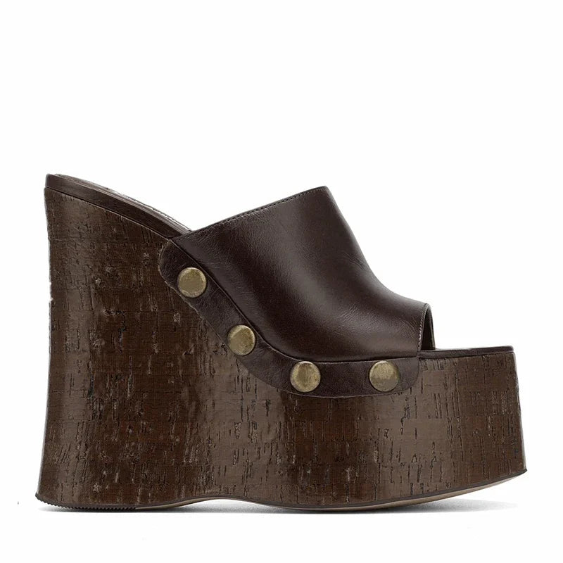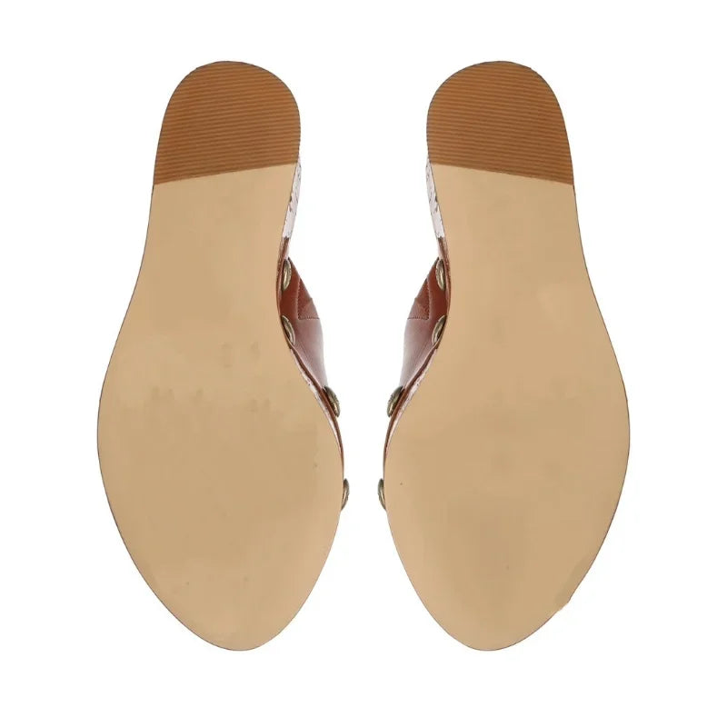Tulip Tan Platform Wedge Heel Slip On Sandals