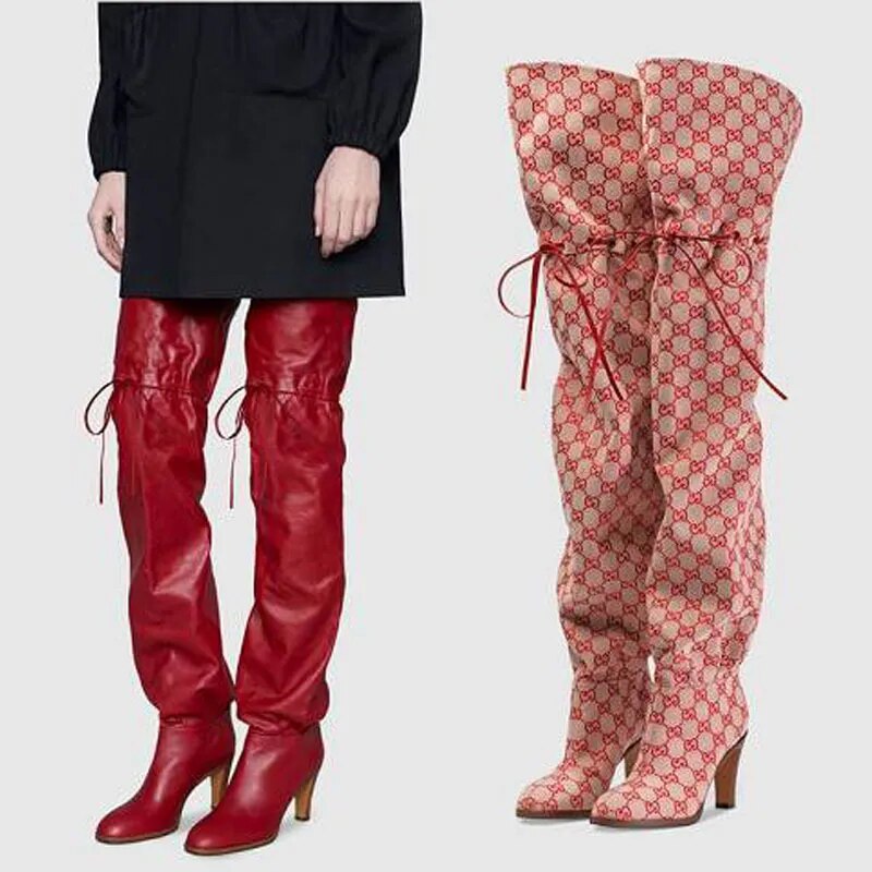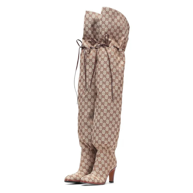Thigh High Tied High Heel Boots Inspired By Gucci
