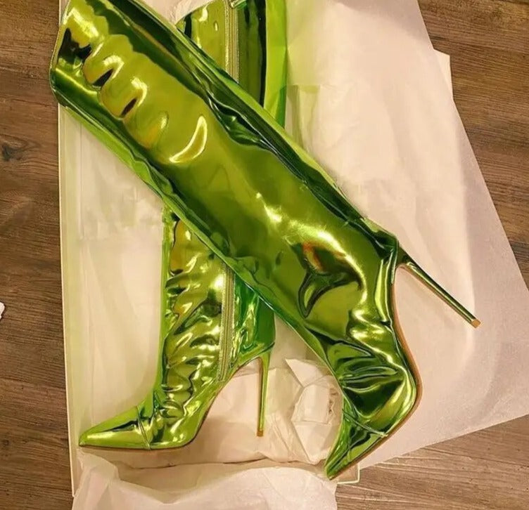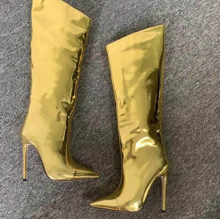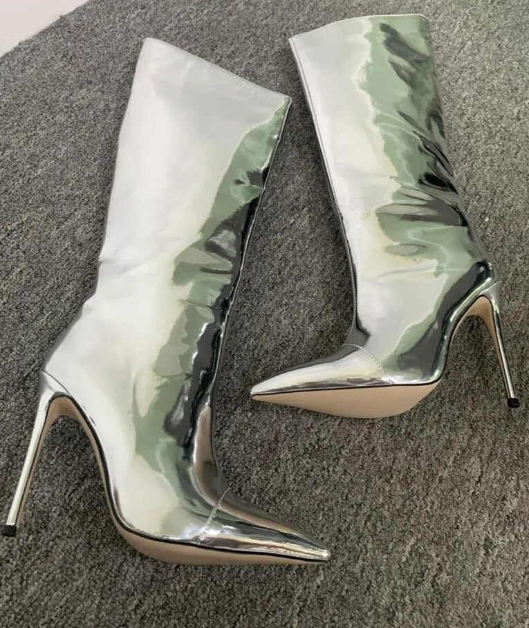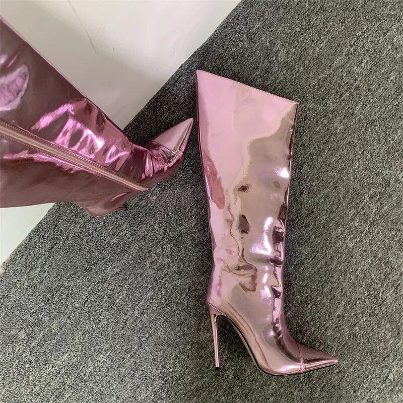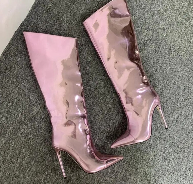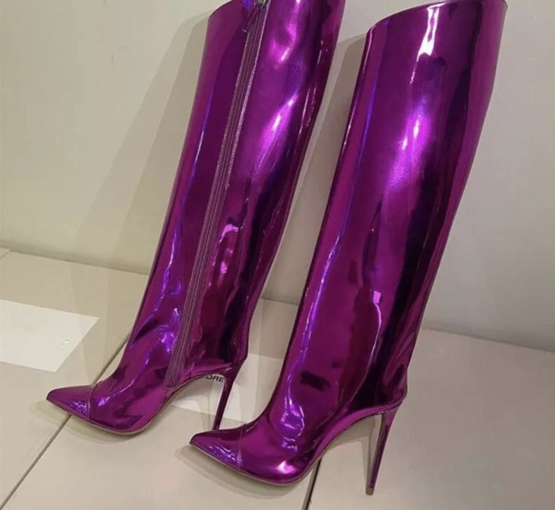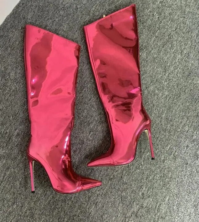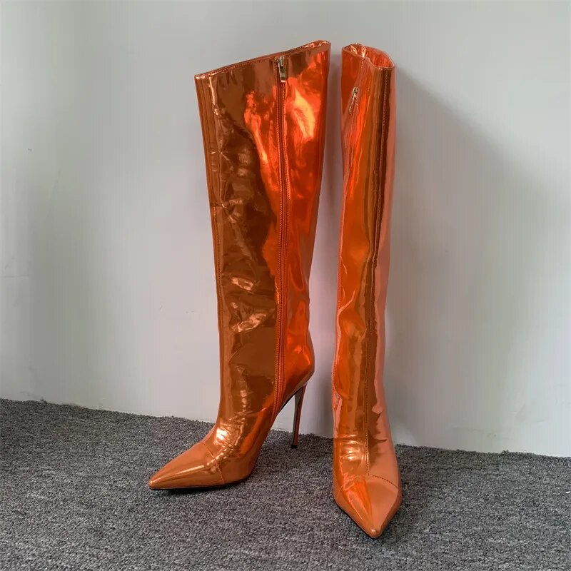 Long Zipper Knee-Length Mirror High Heel Boots