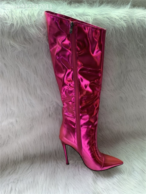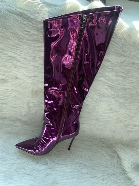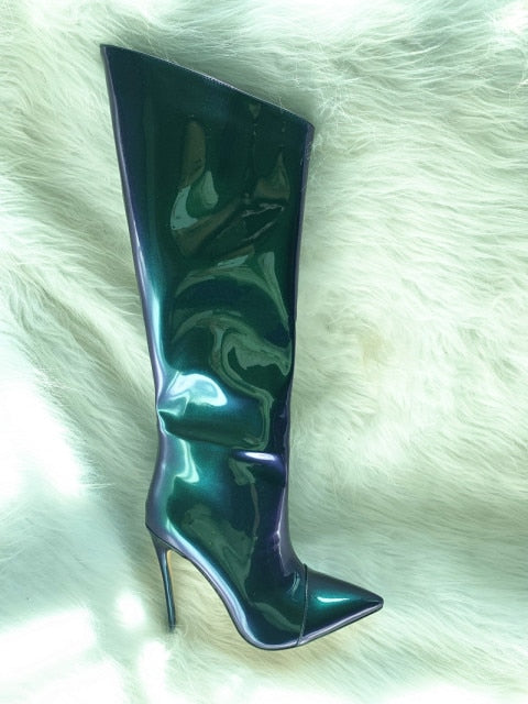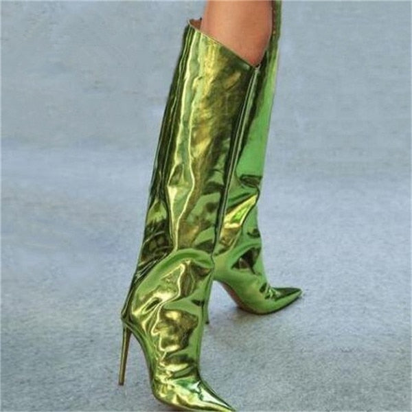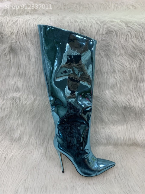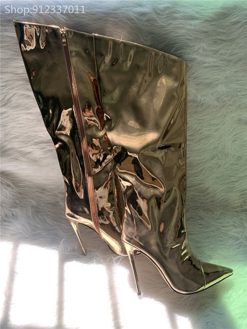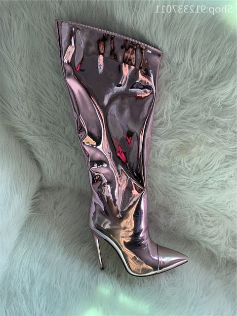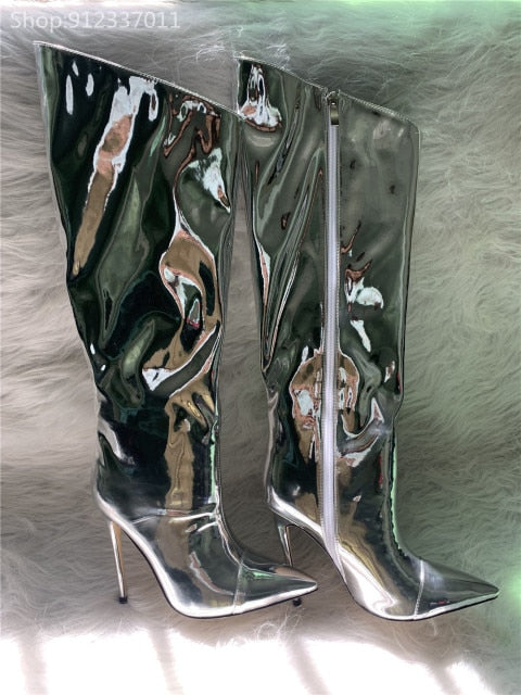 Shiny Metallic Mirror Stiletto Boots