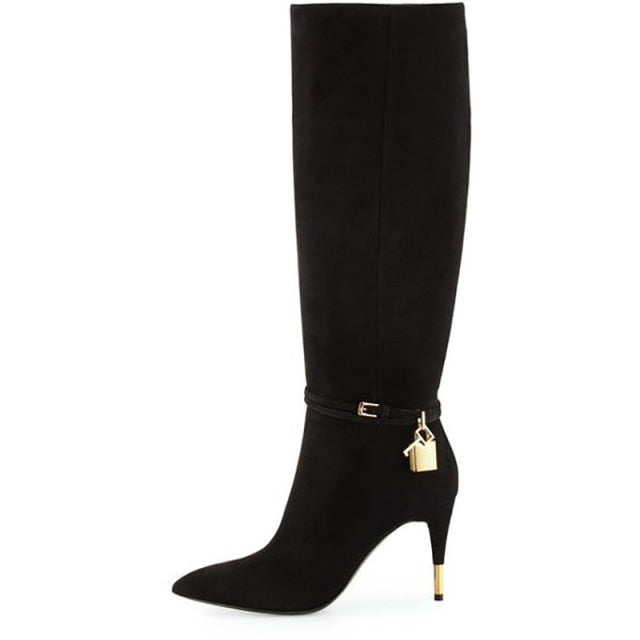 Pad Lock Stiletto High Heel Boots