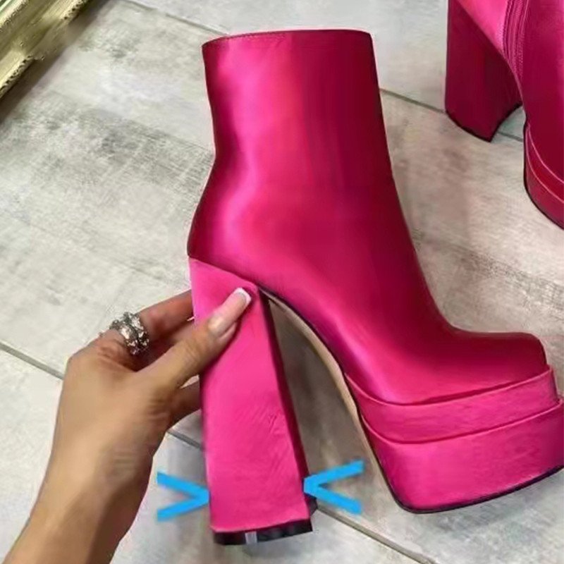 Silky Chunky Square Platform High Heel Boots