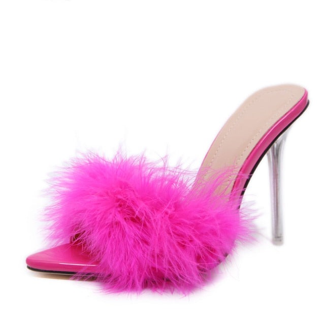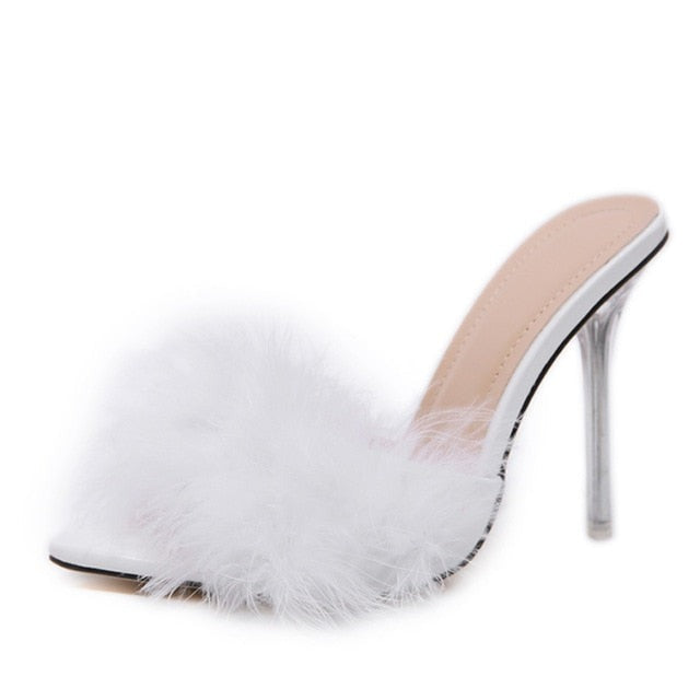 Fur Strap Slip On High Heel Mule Sandals