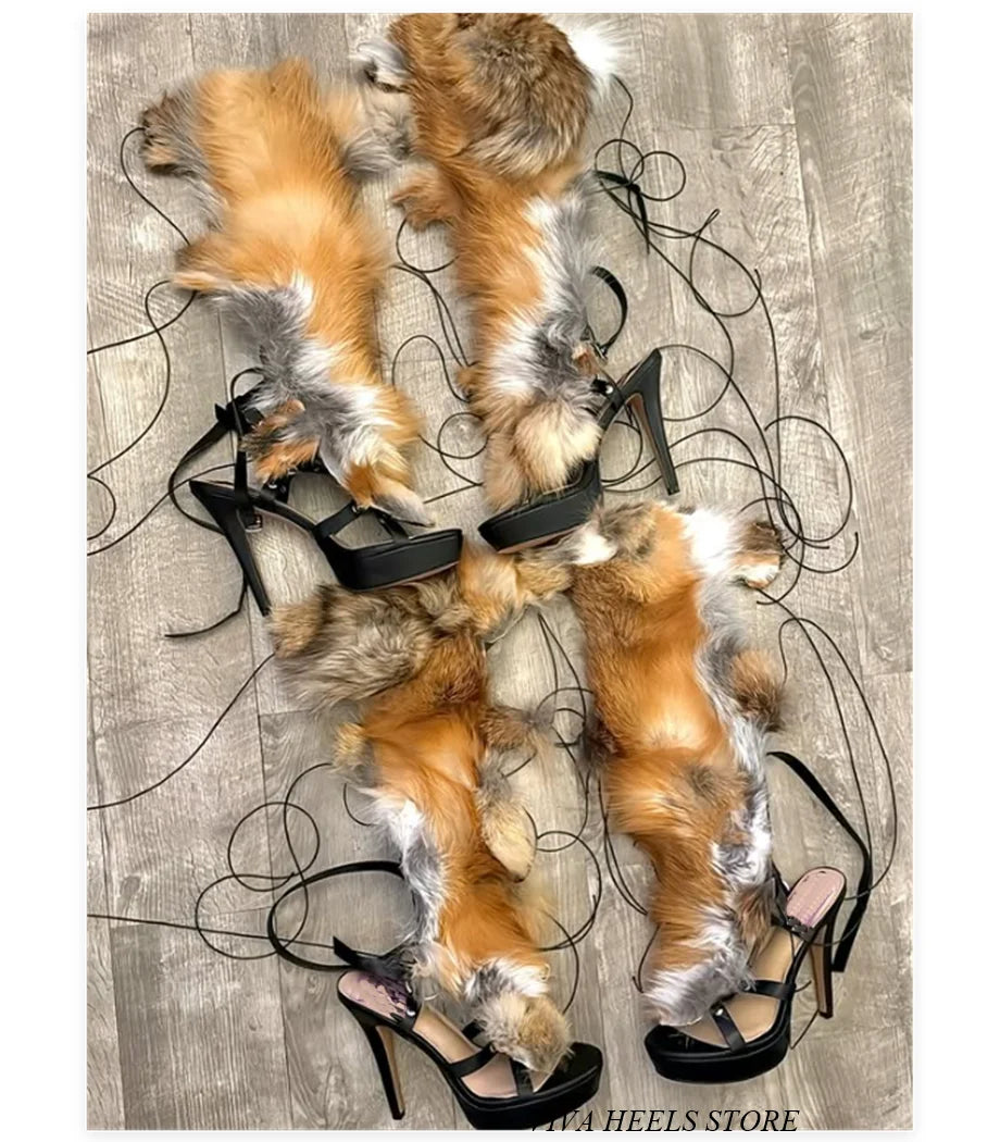 Trimmed Fur Lace-Up Gladiator Stiletto Sandals