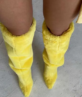 Fleece Fur Knee High Stiletto High Heel Boots