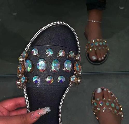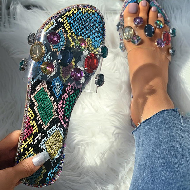 Multi-Color Gemstone Clear Flat Slip On Sandals