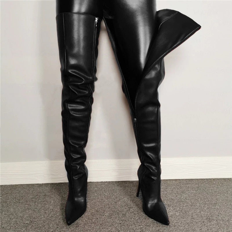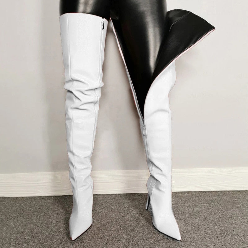 Thigh High Full Length Zipper High Heel Boots