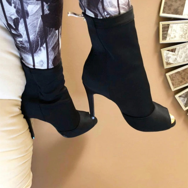 Open Stiletto Zip Up Ankle Boots