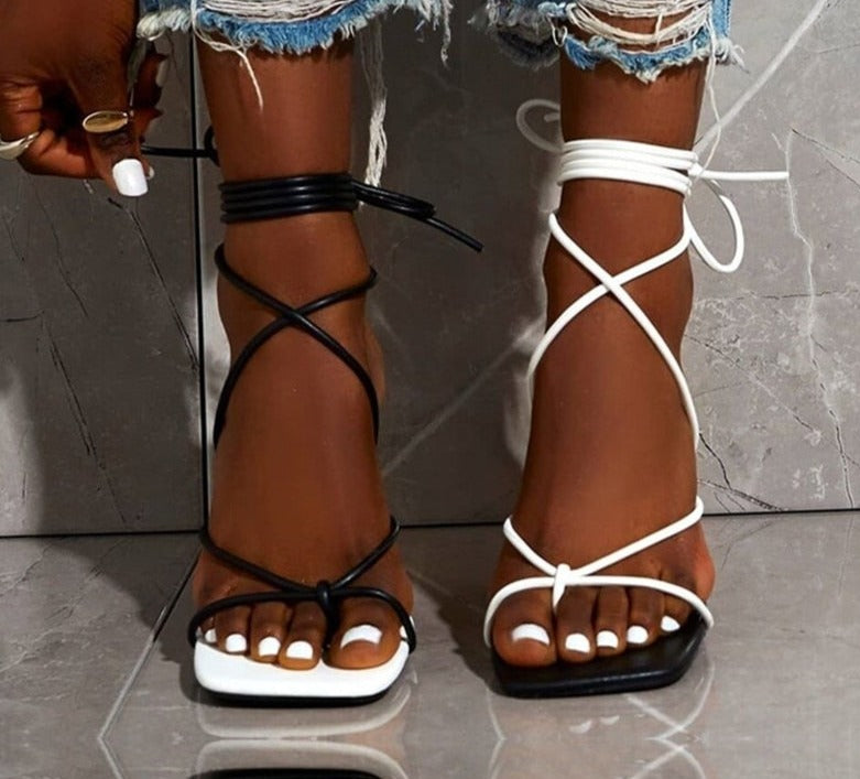 Mismatch Black & White Ankle Length Strap High Heel Sandals