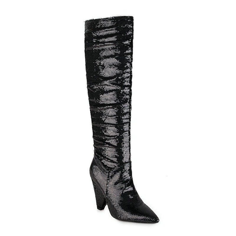 Sequin Triangle High Heel Boots