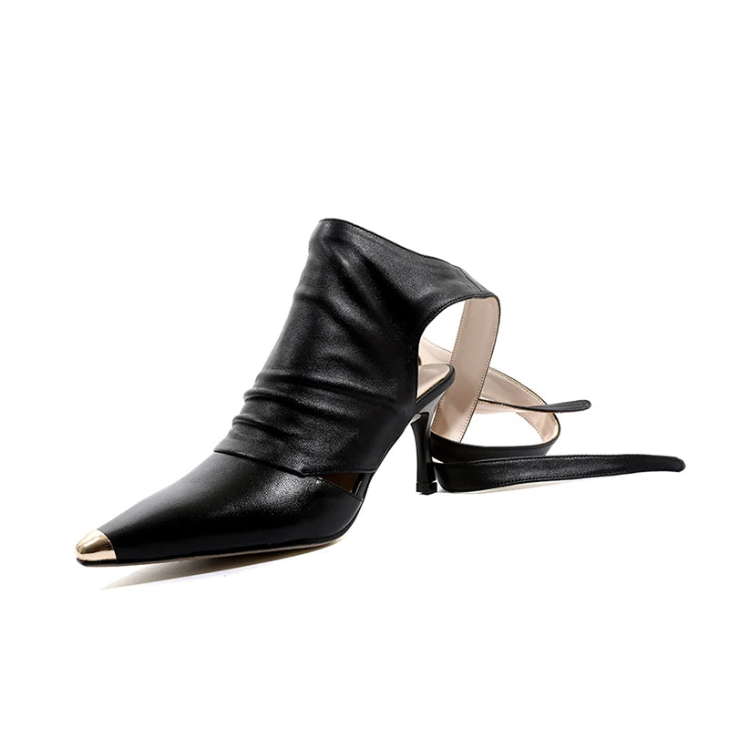Open Heel Lace Up Strappy Kitten Heel Boots