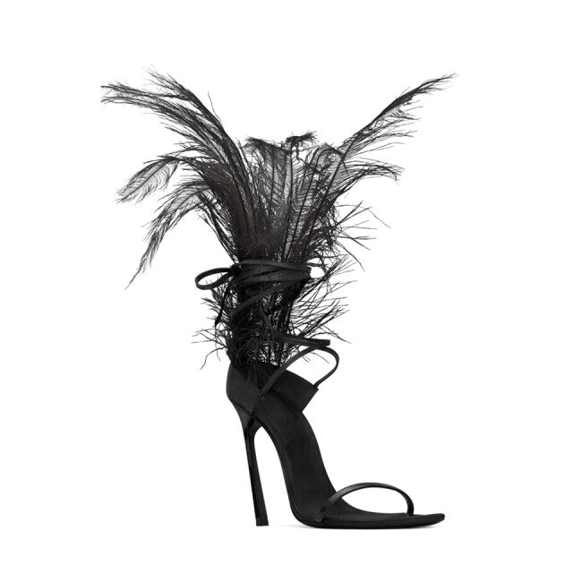 "Talitha" Strappy Feather High Heel Sandals Inspired By Saint Laurent