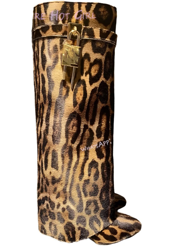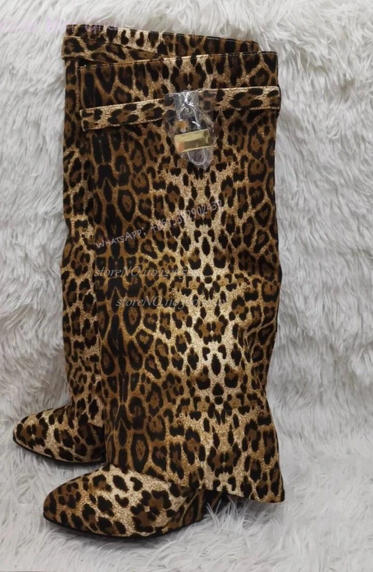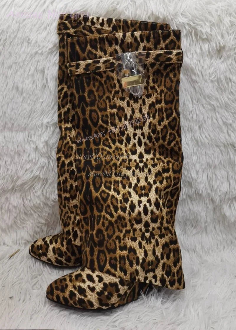 Leopard Print Shark Lock Flat Boots Inspired By Givenchy