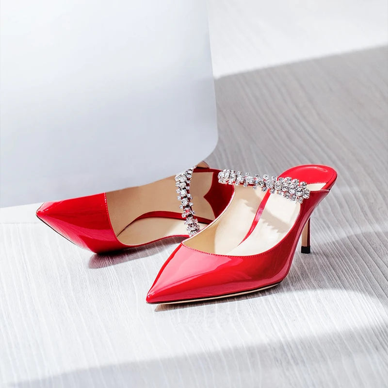 "Bing" Crystal Strap High Heel Mules Inspired By Jimmy Choo
