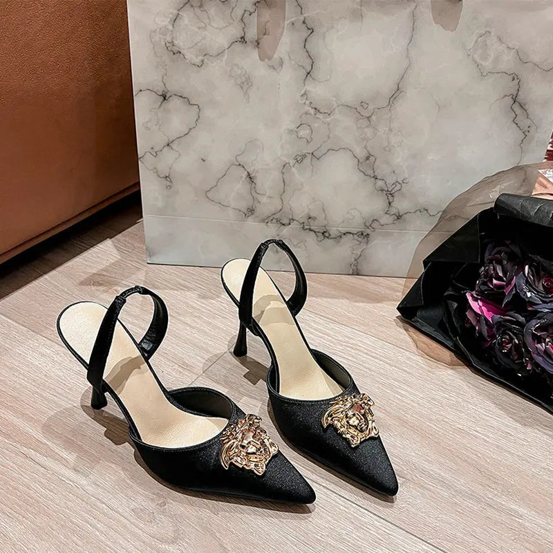 Gold Pendent Sling Back High Heel Pumps Inspired By Louis Vuitton