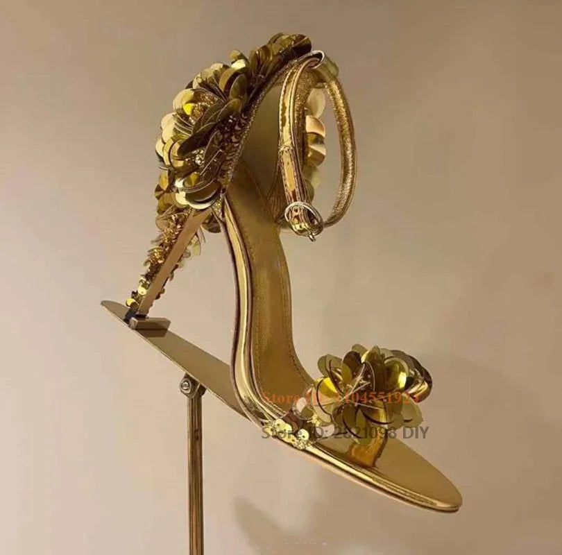 "Cornelia" Sequin Flower High Heel Sandal Inspired By Dolce&Gabbana