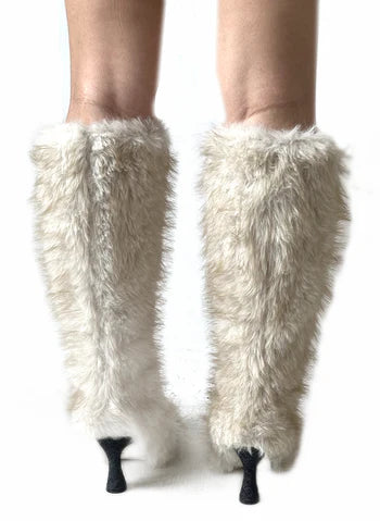 Fur Lace-Up High Heel Boots Inspired By Azelea Wang