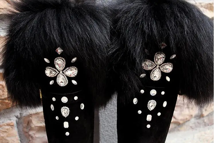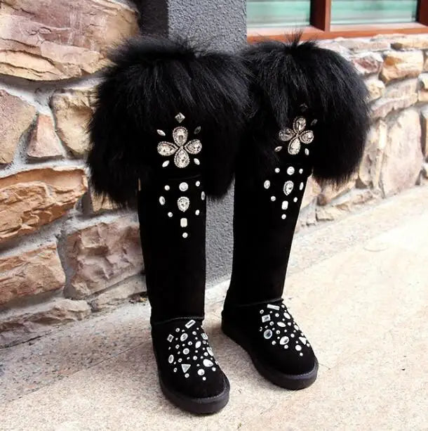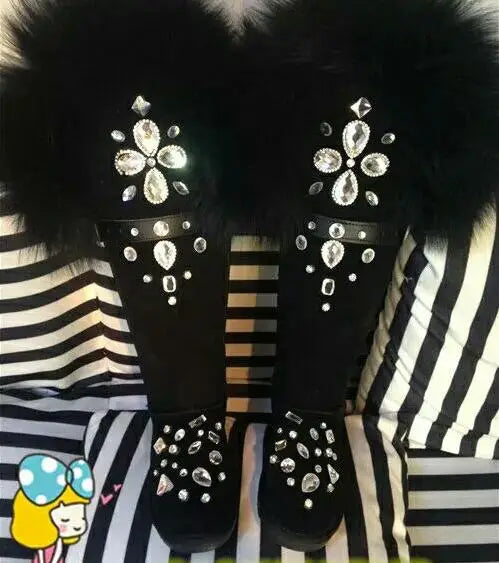 Winter Black Bling Rhinestone Over Knee Snow Boots