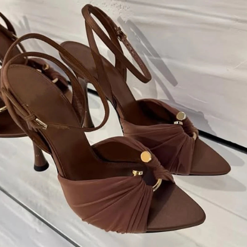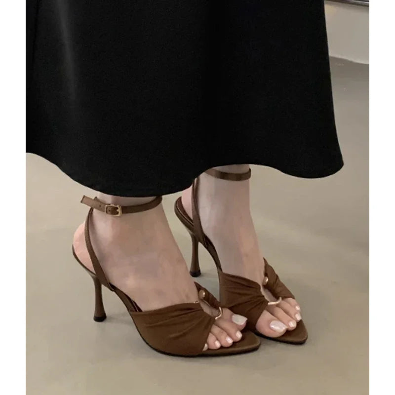 "LOLA" Jersey Draped Peep Toe High Heel Sandals Inspired By Saint Laurent
