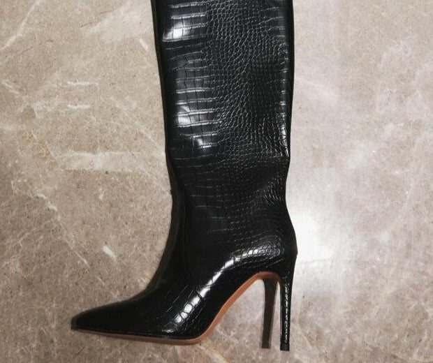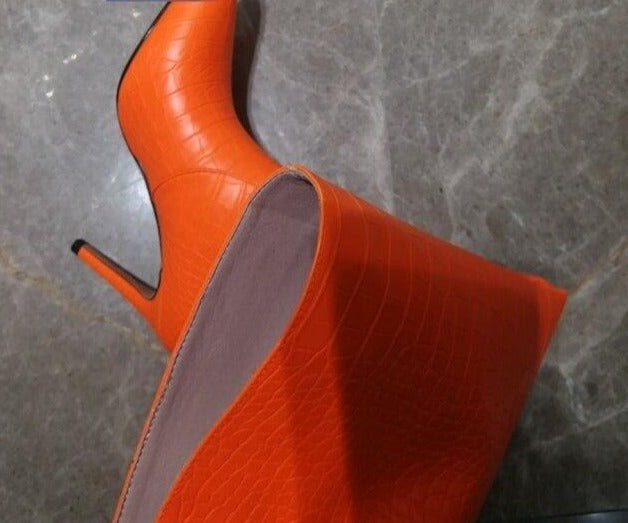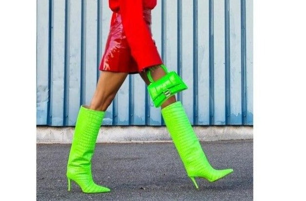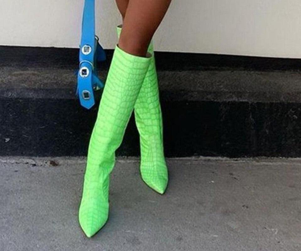 Neon Croc Print Stiletto High Heel Boots