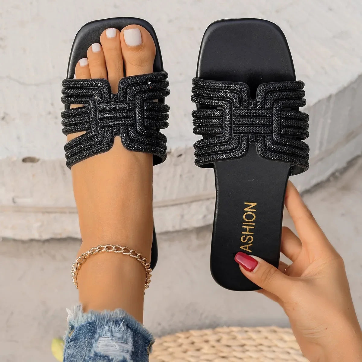 Casual Square Flat Slip On Sandals
