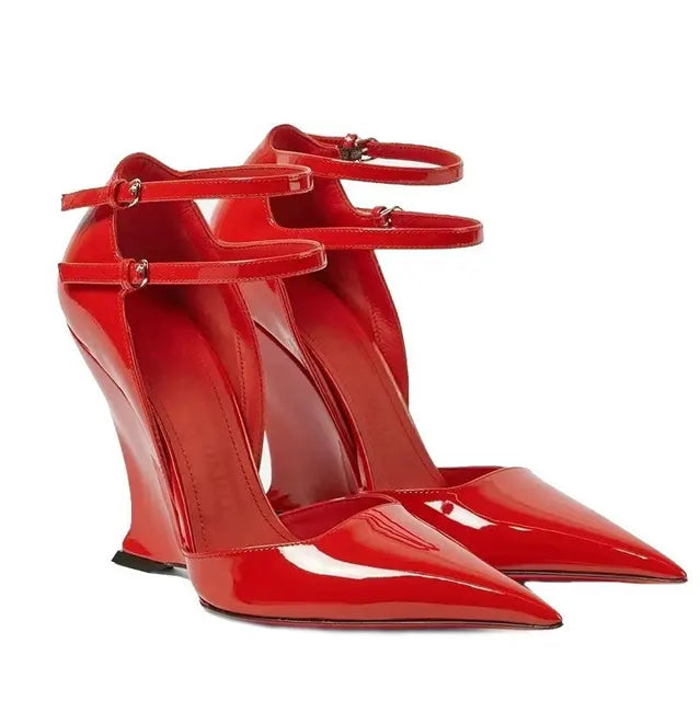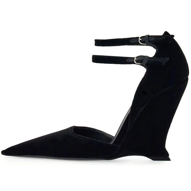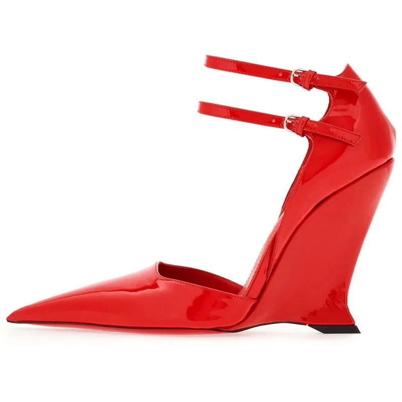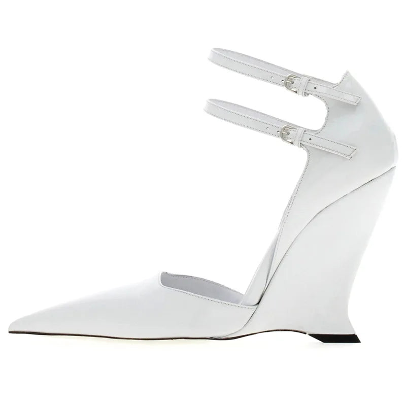 "Vidya" Dual Buckle Wedge Pumps Inspired By Ferragamo