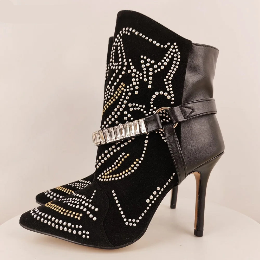 Rhinestone Black Stiletto Ankle Boots Inspired By Isabel Marant