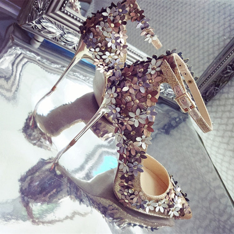 Sequined Flower High Heels Pumps