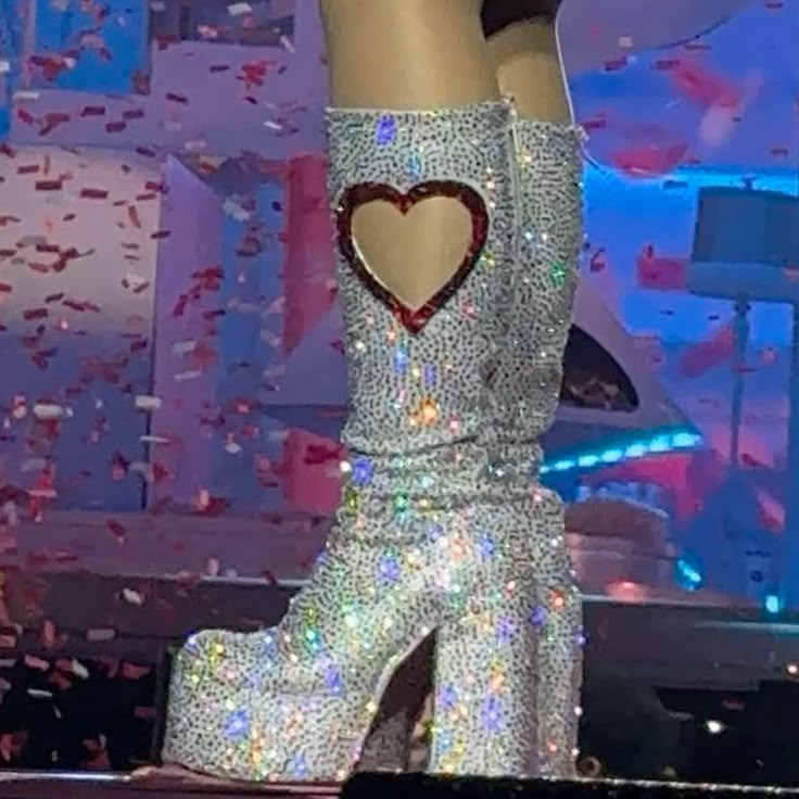 Crystal Love Heart Cut Out Platform High Heel Boots