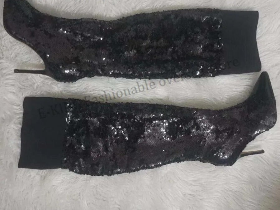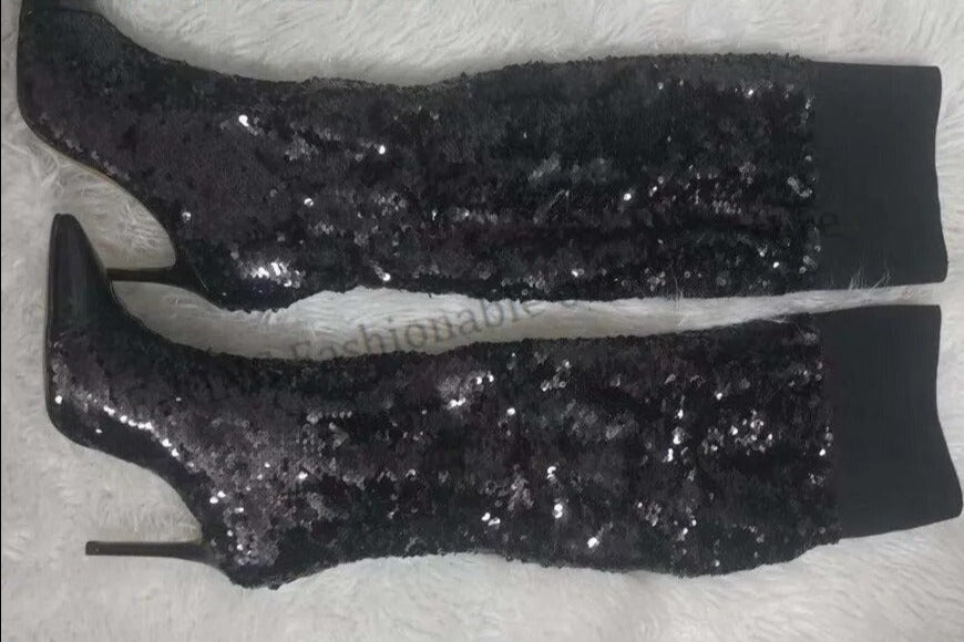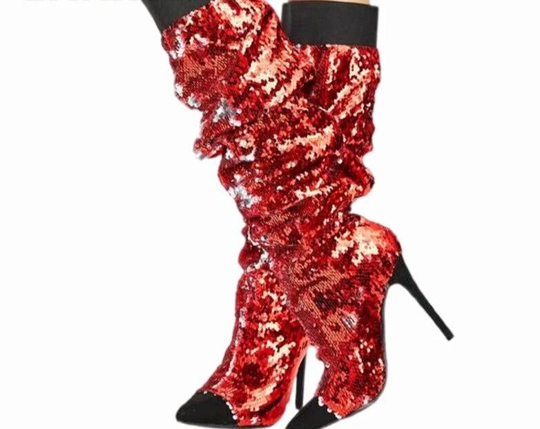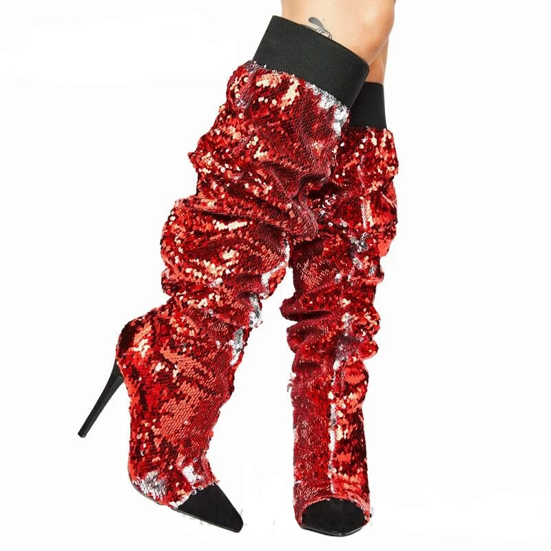 Puffer Slouched Knee High Stiletto High Heel Boots